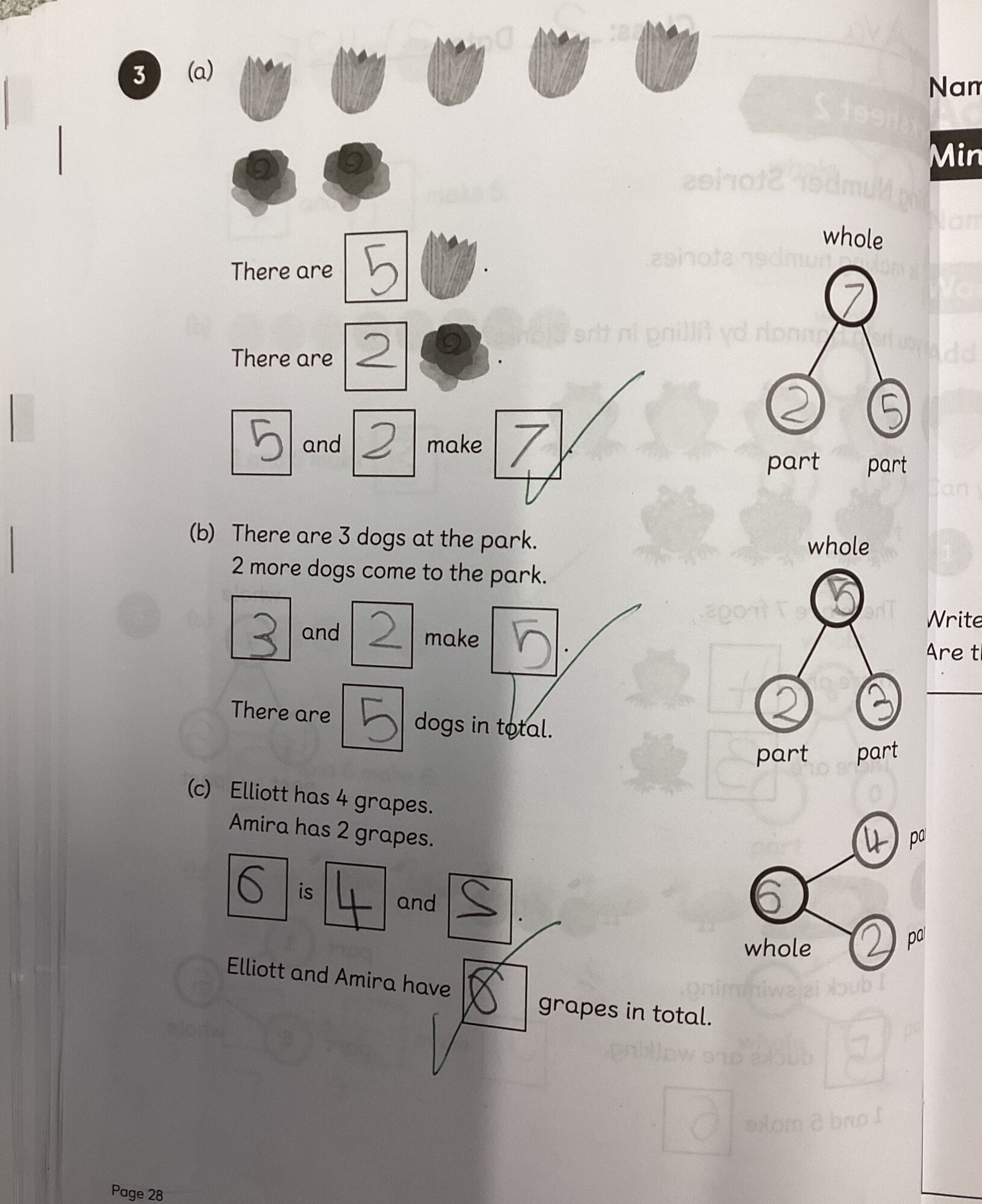 In Maths, we have been learning about number bonds and part-part whole models (October 2025).