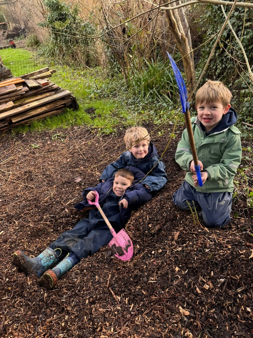 Caterpillar Class visit Space2Grow, our local community garden, every week. Here we play, build confidence and resilience, whilst exploring the world around us (December 2025).
