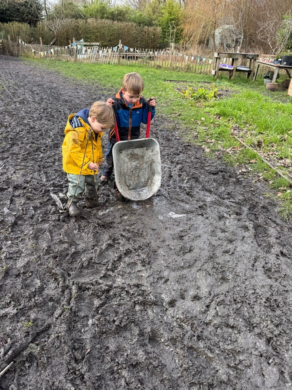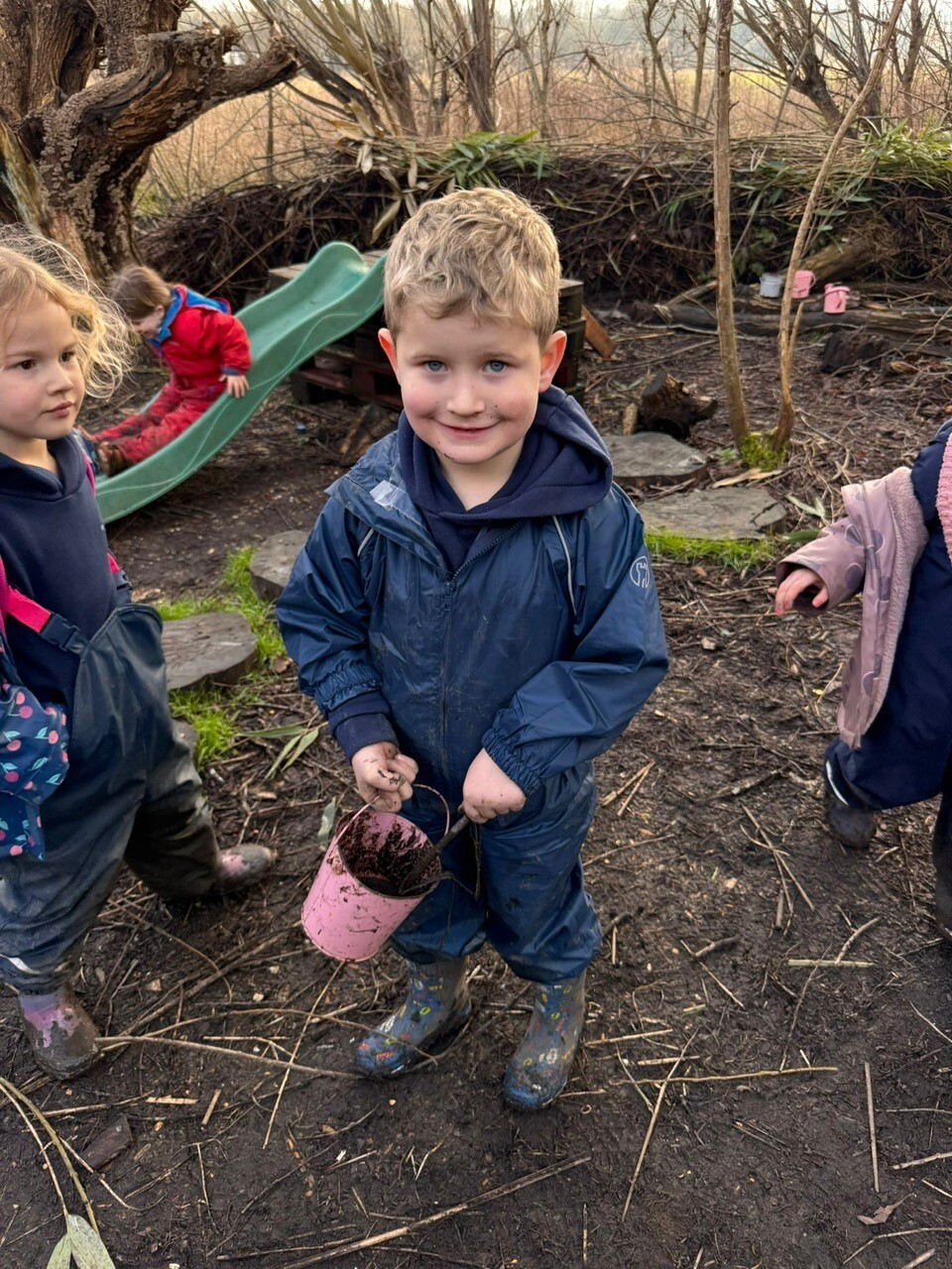 The bad weather has helped create a muddy haven for Caterpillar Class! Lots of mud pies, digging, exploring and muddy fun! (February 2026)