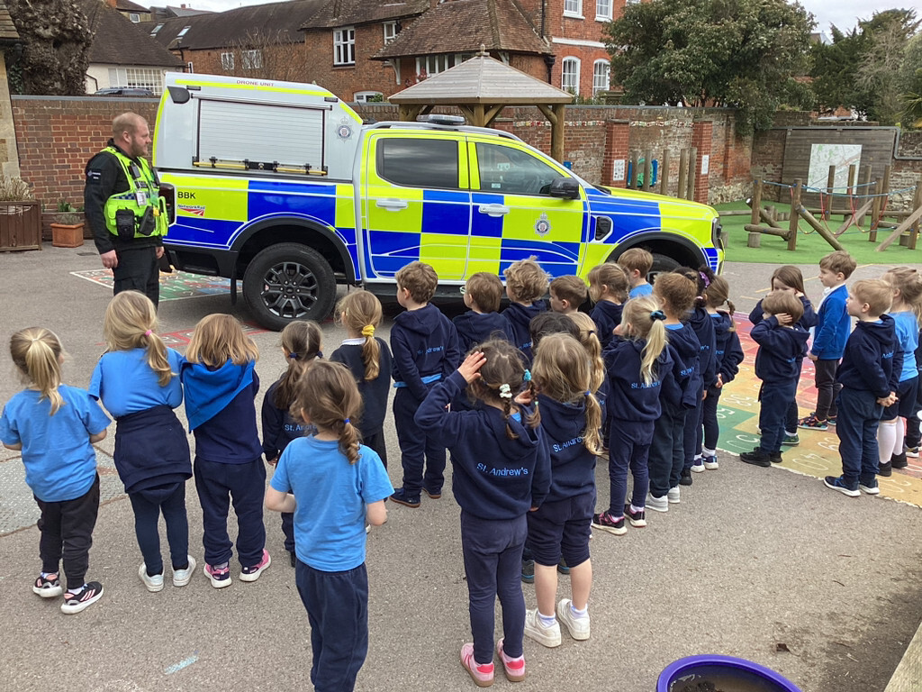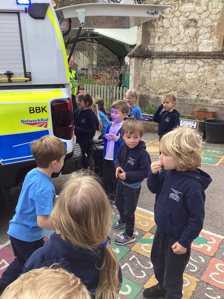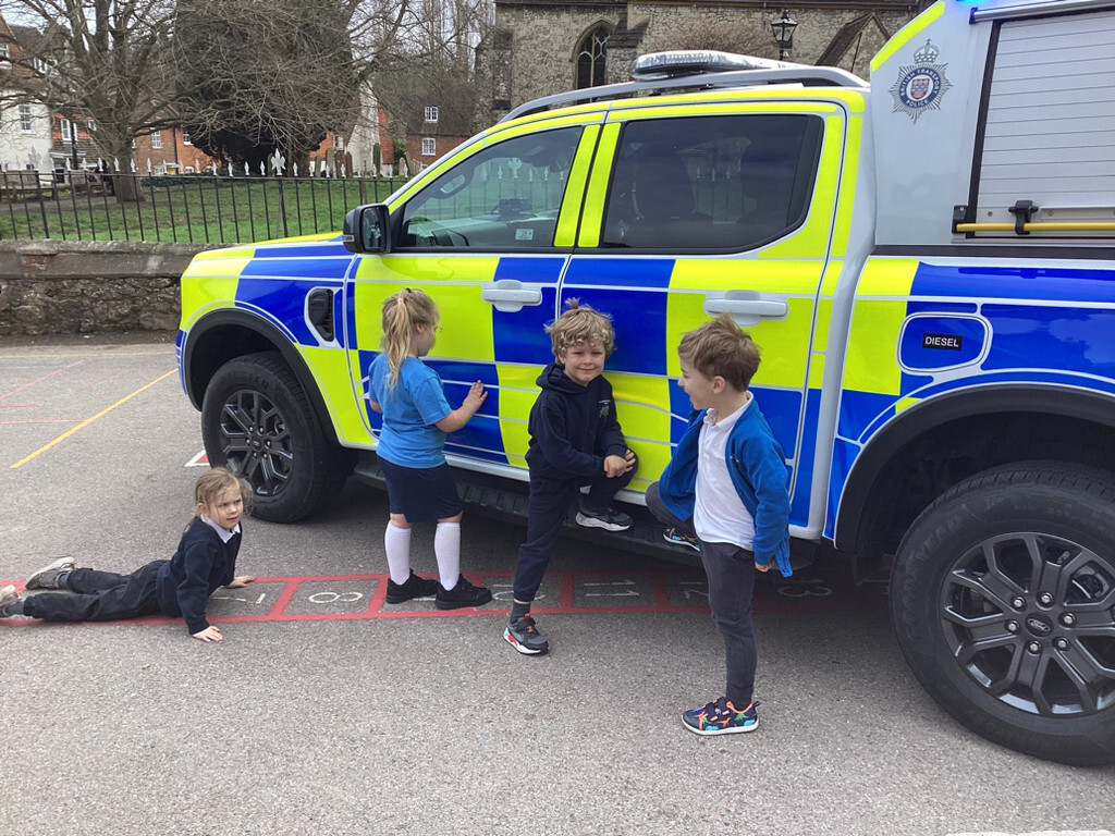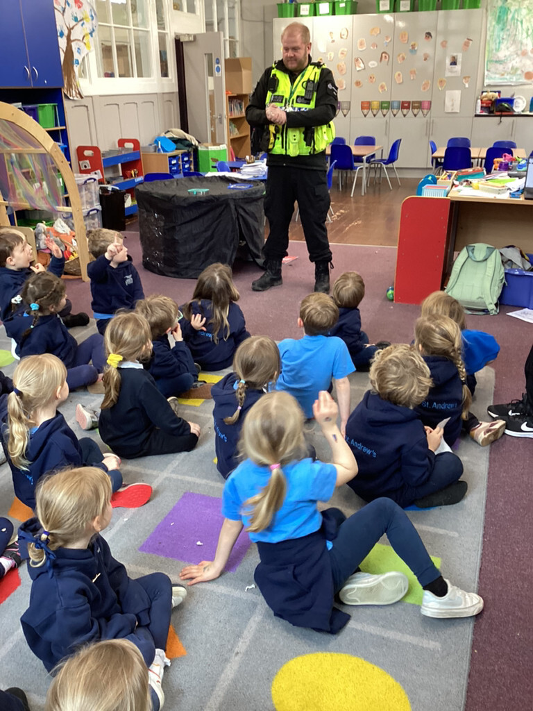 We were visited by a police officer in school. As part of our topic ‘People who help us’ he came to talk to us about his job and the role that he has in our community. The whole class loved hearing about different ways that police officers help in our local community. They asked lots of how and why questions about his job, equipment and the police vehicle. He showed us the equipment which police carry with them each day, how they work and when they might need to use them. We got to look around the police car, test out the flashing lights and even the siren! (March 2026)
