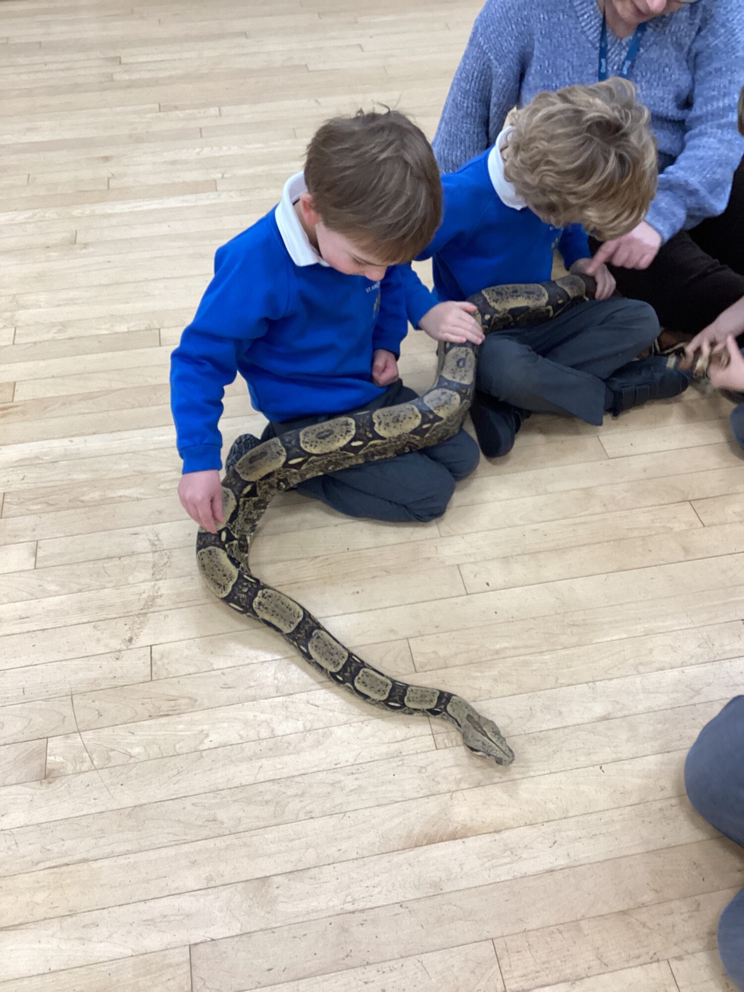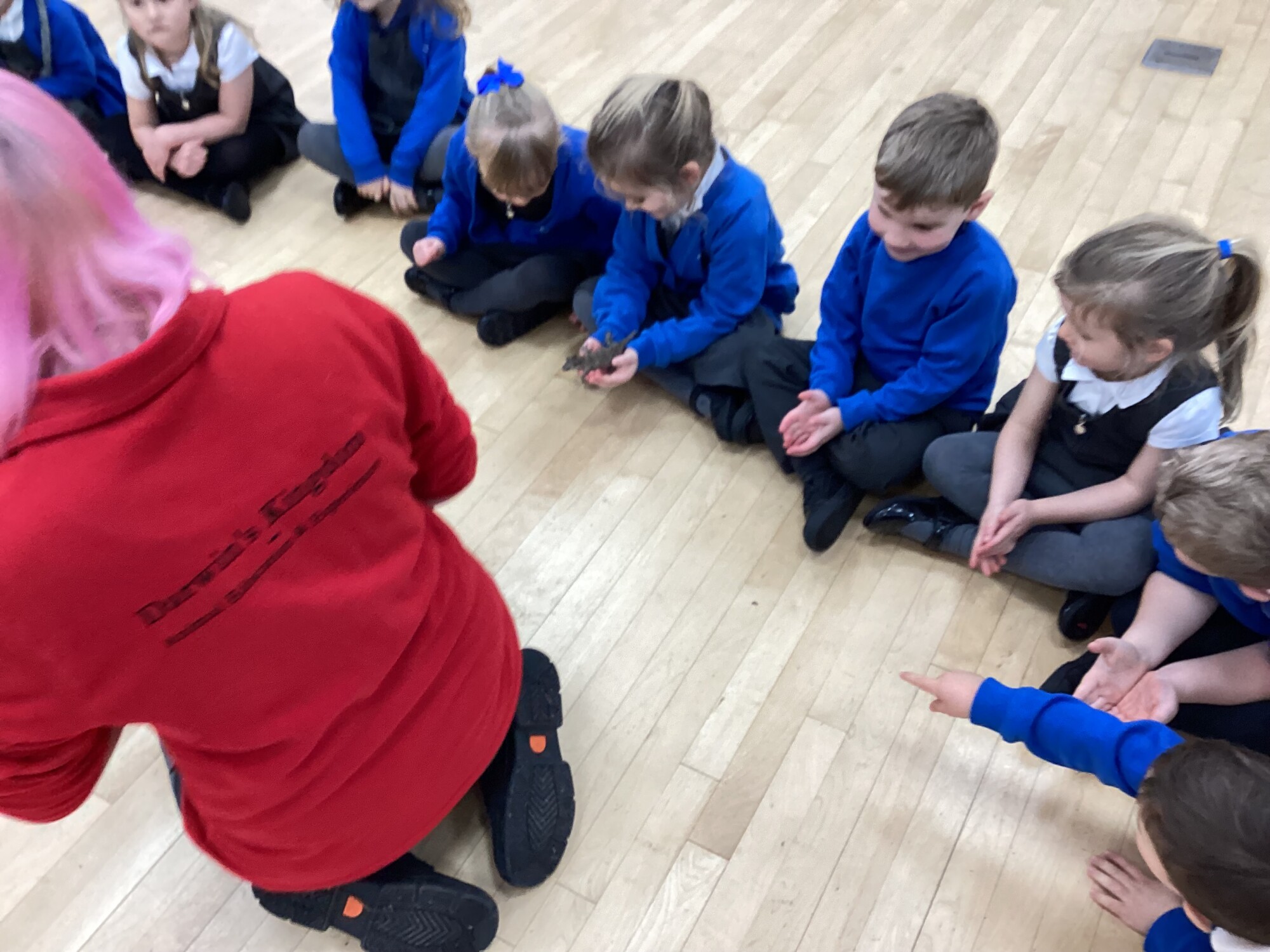 Reception had a very exciting visit! We had a Reptile handler in. The children thought of lots of questions to ask the Reptile Handler. They noticed how each reptile was different and used lots of lovely language such as "spikey", "scaley" and "sharp." One of the lizards was very jumpy. The children were very brave and had a go at carefully holding them. (January 2026)