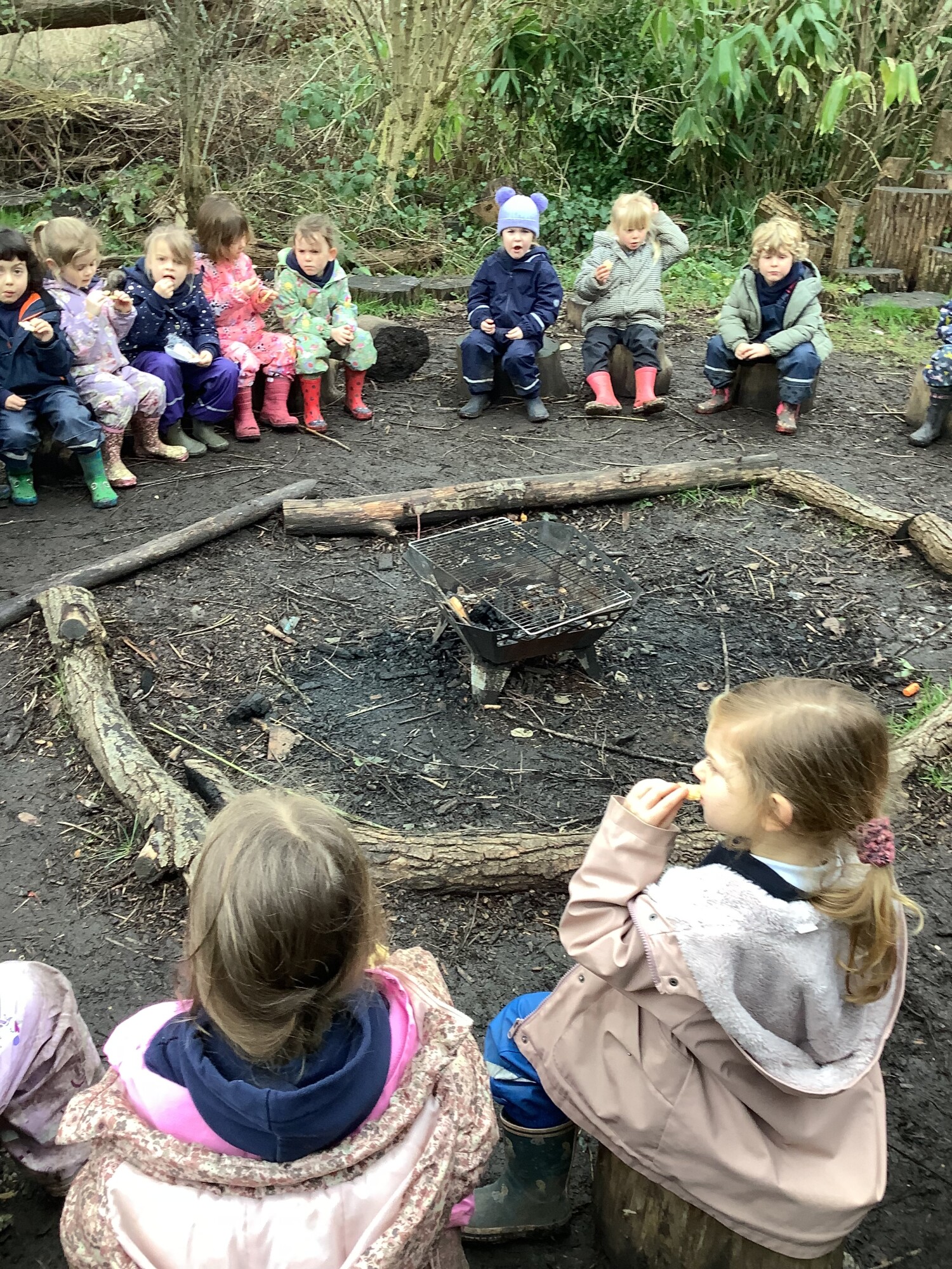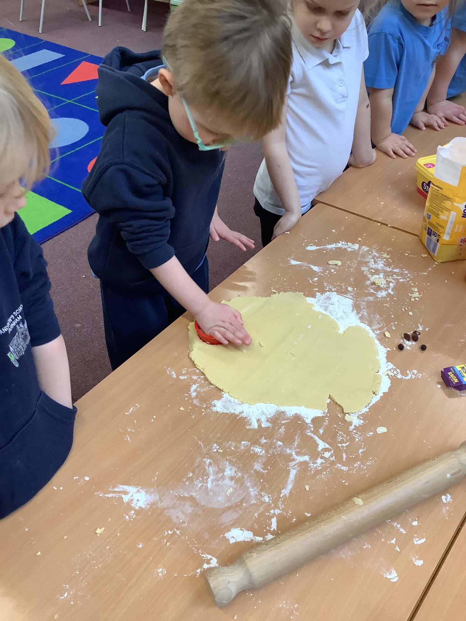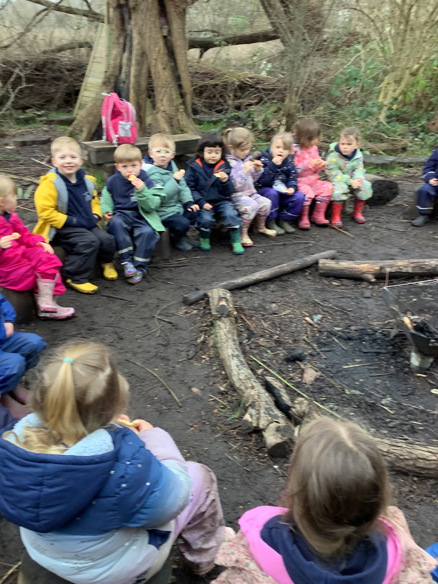 This week Caterpillar Class have enjoyed learning to make biscuits. We have learnt how to weigh out our ingredients, pour, mix, roll and cut. We each counted out 5 raisins to carefully push into our biscuits before baking in the over. We enjoyed eating our yummy baking around the log circle at Space2Grow. (January 2026)
