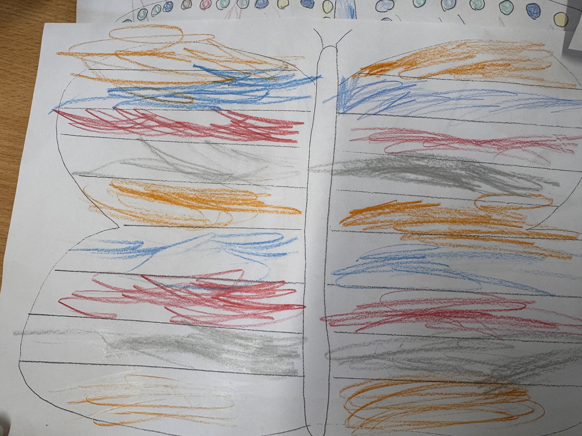 We have been looking around our environment to spot things which have repeated patterns. This week, our class story, 'The Tadpole's Promise', had a butterfly in it and the children decided that they wanted to repeat their own repeated patterns on butterflies. (April 2026)